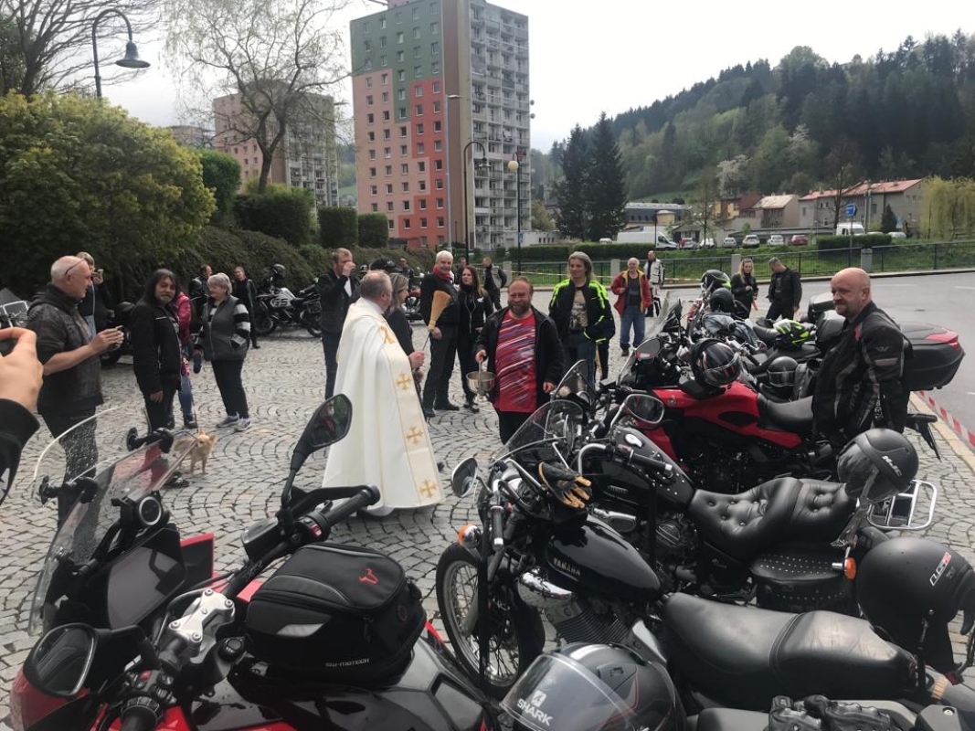 Hned další sobotu 6.5.23 jsme vyjeli do Železného Brodu na sraz s motopožehnáním pořádaný Kumpány z Loužnice. Ráno cestou tam jsme pěkně zmokli, ale po žehnání motorek už bylo bez deště a společná spanilá jízda byla super. Akce pokračovala v Loužnici na koupališti společnou zábavou.